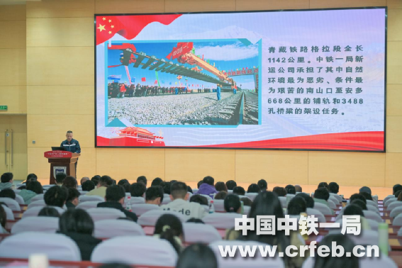 馬建爭以《傳承青藏鐵路建設精神,永做強國建設、民族復興路上的開路先鋒》為題,為師生作主題宣講。宣講緊扣中鐵一局“艱苦不怕吃苦,缺氧不缺精神,風暴強意志更強,海拔高追求更高”的青藏鐵路建設精神,結合自身奮戰青藏鐵路一線的親身經歷,從“艱苦不怕吃苦”的偉大品格、“缺氧不缺精神”的崇高境界、“風暴強意志更強”的頑強斗志、“海拔高追求更高”的科學態度四個維度,系統闡釋了偉大精神的深刻內涵、鮮明特征與時代價值。他以飽滿的熱情和真摯的情感,匯報了對偉大精神的傳承與實踐,并深情寄語新時代“強國一代”,激勵他們勇擔歷史使命,矢志接續奮斗。