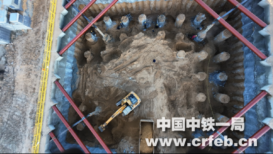 隆冬的榆林,氣溫跌到-15℃以下,凜冽的寒風如刀割般掠過工地。為了趕在春節前拿下“大基坑”開挖關鍵節點,項目全員開啟“加緊快上”模式。但一遇到管線密集地段,機械作業無從施展,就只能人工開挖,遇到風沙肆虐時,寒風更是裹著黃沙往衣領里灌,就是在這樣的條件下,20余名施工人員輪班鏖戰1個月,最終在2025年1月順利完成34.5米×37.5米×8.5米大基坑開挖工作。