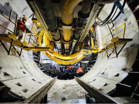 據項目相關負責人介紹,該區間施工面臨始發建壓、江底掘進、樁基處理等多重高風險工況。為確保工程順利推進,建設團隊采取了多項保障措施:在組織方面,成立專項工作組,建立每日通報、每周分析的進度管控機制,關鍵崗位實行雙配置,確保24小時連續作業;在技術方面,創新改良刀具配置、采用“三軸攪拌樁+高壓旋噴樁”復合加固工藝,構建多重密封體系,并根據地質條件動態調整掘進參數;在資源保障方面,按1.5倍標準儲備物資,協調設備廠家駐場服務,同時嚴格落實現場標準化管理。