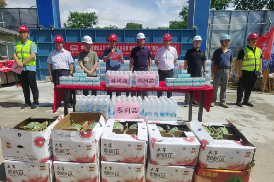 活動中,與會領導為一線作業人員送去了西瓜、鹽汽水等清涼物資和藿香正氣水、人丹等防暑藥品,叮囑大家清淡飲食、合理作息、注意身體健康。