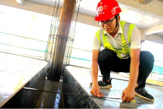 下午三點多烈日當空 太陽毒辣辣的,史勝男和監理方在板面自檢梁板鋼筋,汗水隨著黝黑的臉頰緩緩流下,淺藍色的工衣從后面看,背上已經濕了一大半了,“李工,你們這板筋搭接長度不夠,需要整改,還有腳下這一條梁下部鋼筋沒有綁扎,開側模綁扎”。“好吧,史工”。再給工隊負責人交代自檢過程中出現的問題,督促他們整改。整改完成后,通知監理驗收。覃穩拿了個吊錘在負一層給柱子做垂直度,只聽他在那喊著“上面多少,你不要問下面,你先說上面,下面有我看著,不要給我搞花里胡哨的,實事求是” 上面的工人說到:“上面23.6,下面呢。”“下面23.7,好,這個柱子沒有問題,下一個。”