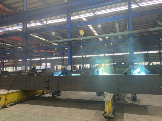 三班輪轉(zhuǎn),打響生產(chǎn)突擊戰(zhàn)。為最大限度搶回原材料延誤時間,生產(chǎn)車間啟動“三班倒”工作制,24小時不間斷作業(yè)。技術(shù)、質(zhì)檢、物流等業(yè)務(wù)系統(tǒng)全程配合,做到“人停機不停”,全力保障首批鋼結(jié)構(gòu)按期交付。同時,一線員工發(fā)揚拼搏精神,克服車間40°高溫、疲勞等困難,爭分奪秒完成下料、組立、焊接、校正等工序,確保每一道環(huán)節(jié)嚴格符合質(zhì)量標準。