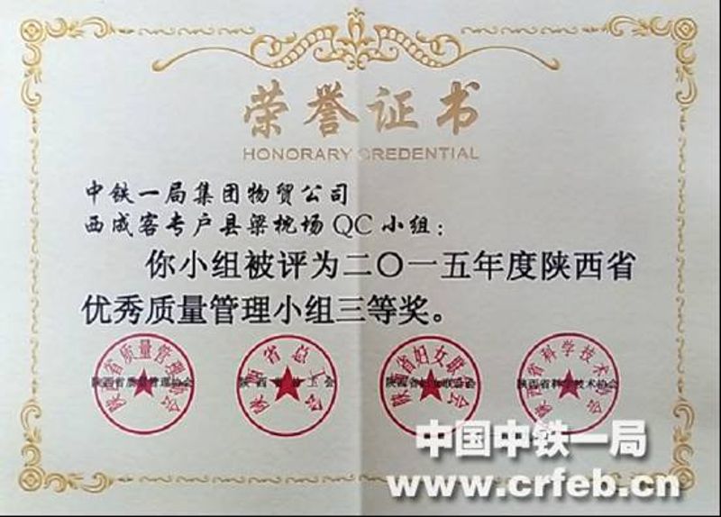 2016年7月15日,西成客專戶縣梁枕場(chǎng)QC小組獲得全國(guó)鐵道行業(yè)質(zhì)量信得過(guò)班組優(yōu)秀獎(jiǎng),獲此殊榮是公司的大力支持和戶縣梁枕場(chǎng)QC小組不斷努力的結(jié)果。