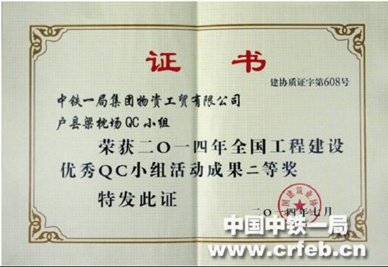 2014年獲得全國(guó)工程建設(shè)QC小組活動(dòng)成果二等獎(jiǎng)