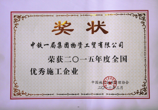 全國優(yōu)秀施工企業(yè)獎狀